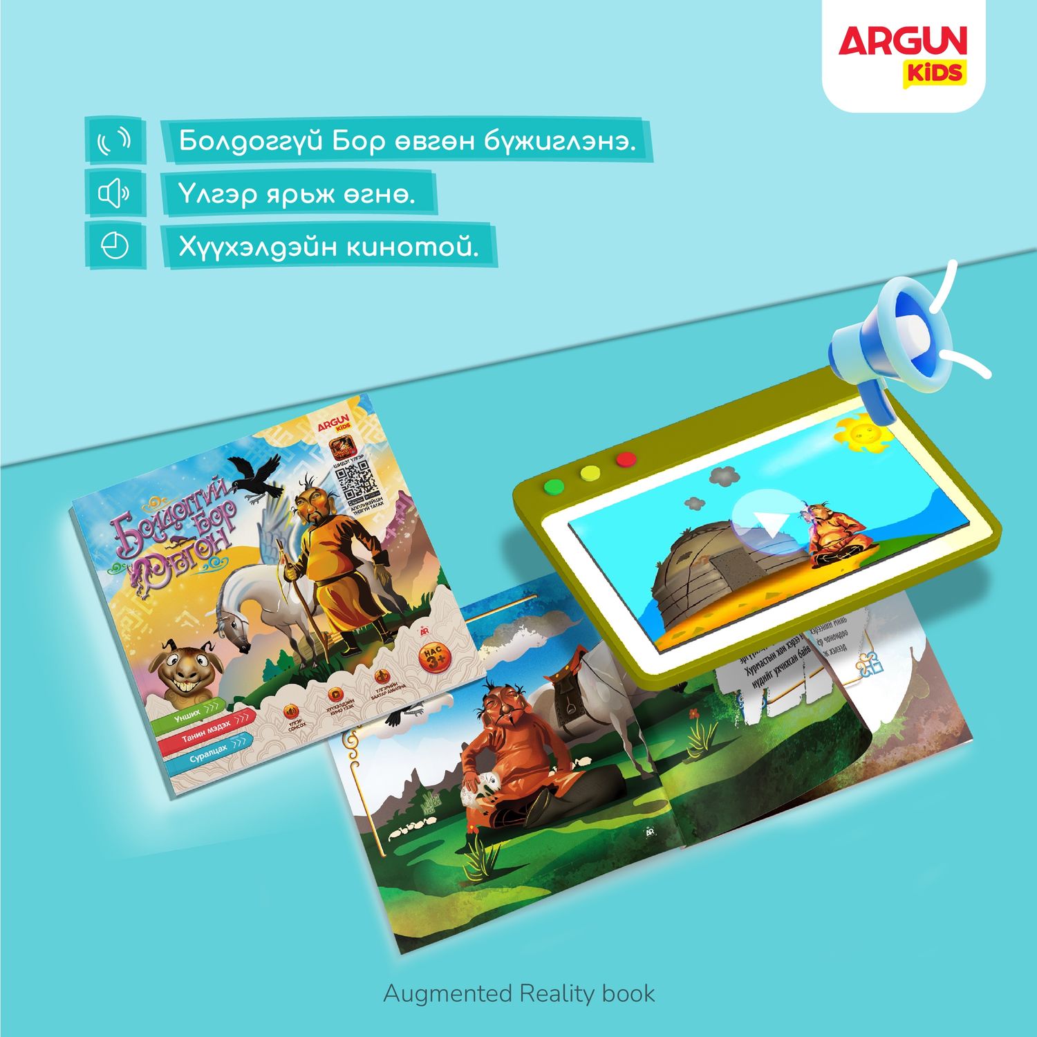 Дэвшилтэт "Augmented Reality" технологийн тусламжтайгаар "Болдоггүй бор өвгөн" үлгэрийн ном маань амилж, өөрсдийгөө танилцуулж, бүжиглэж, дуу авиагаа гаргаж хүүхдийн төсөөллийг бодит мэт болгосон шидэт үлгэрийн ном юм. Болдоггүй бор өвгөний дуу авиа, хөдөлгөөн, дүр төрхийг ажиглаж, уншингаа суралцаарай.