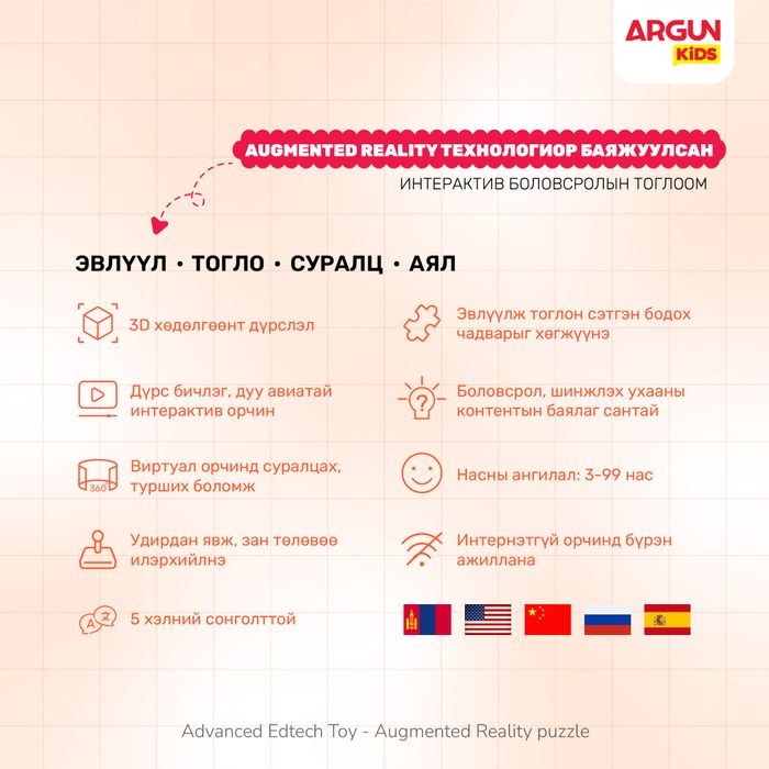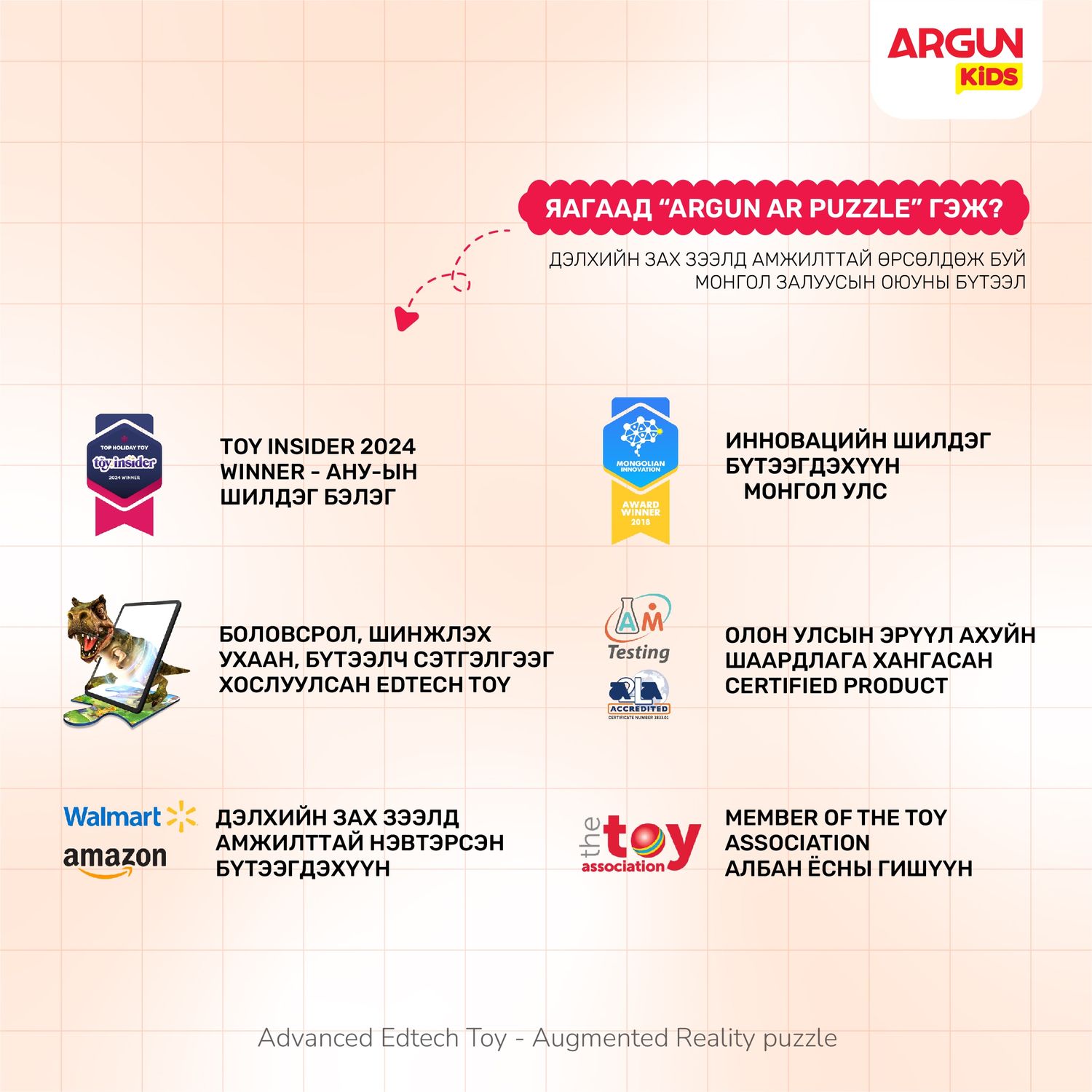 Мөн дараах товчийг дарж "AR Puzzle Toys" аппликейшнээ татаарай: App Store, Play Store.