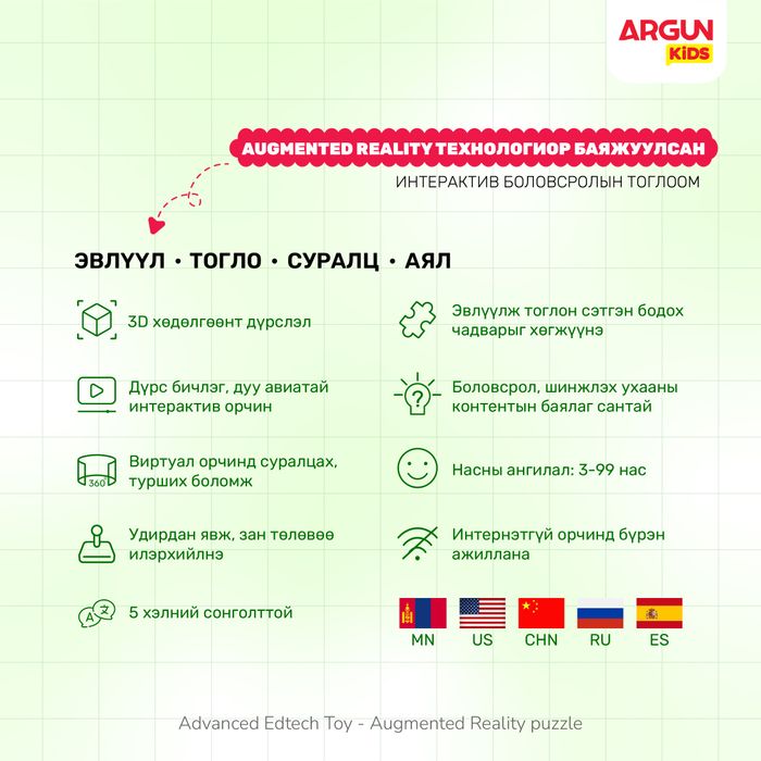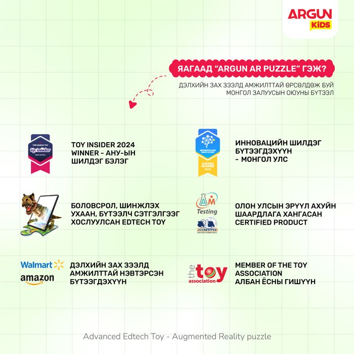 Мөн дараах товчийг дарж "AR Puzzle Toys" аппликейшнээ татаарай: App Store, Play Store.